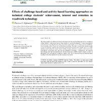 - Effects of challenge-based and activity-based learning approaches on technical college students’ achievement, interest and retention in woodwork technology.